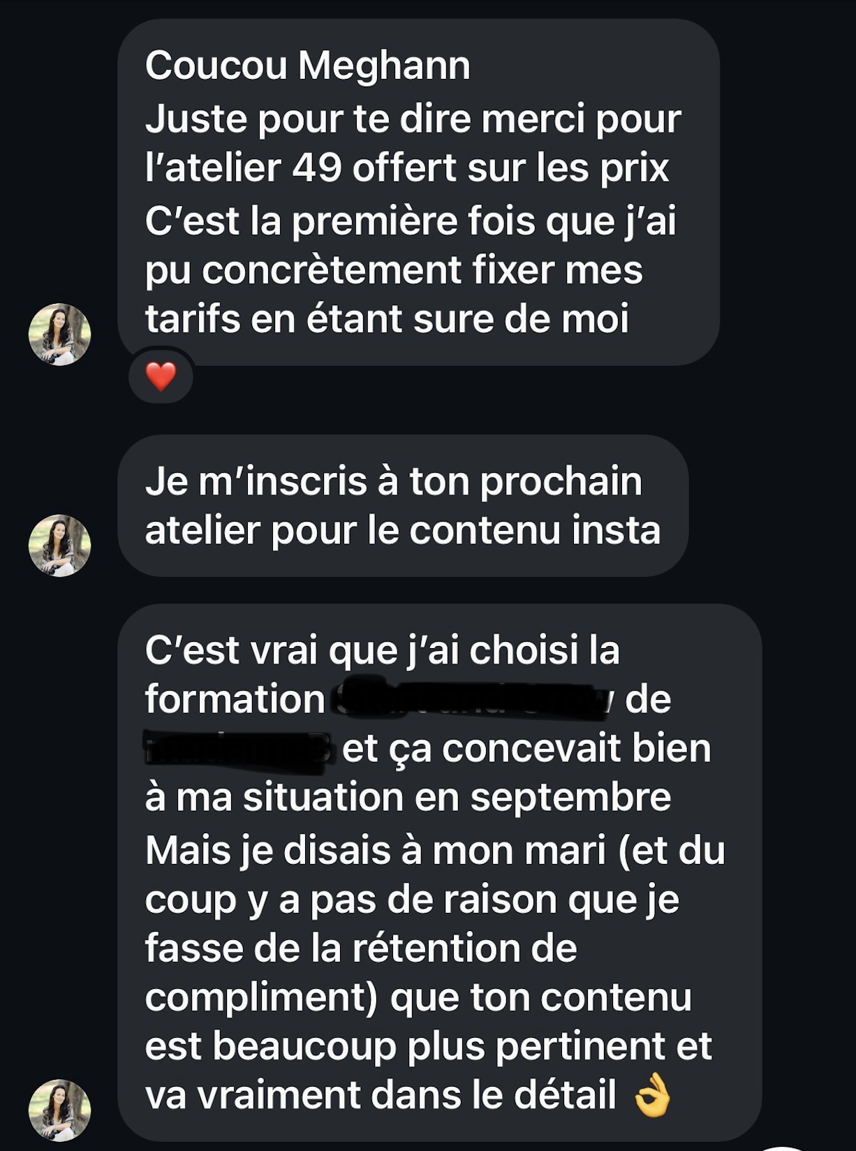 - Un carnet de travail et un récap écrit sont mis à disposition. Les actions sont détaillées sous formes d’exercices, de travail de réflexion, dans l’ordre. C’est ce qui permet de dépasser le stade de la compréhension et de pouvoir appliquer concrètement ce qu’on a appris.