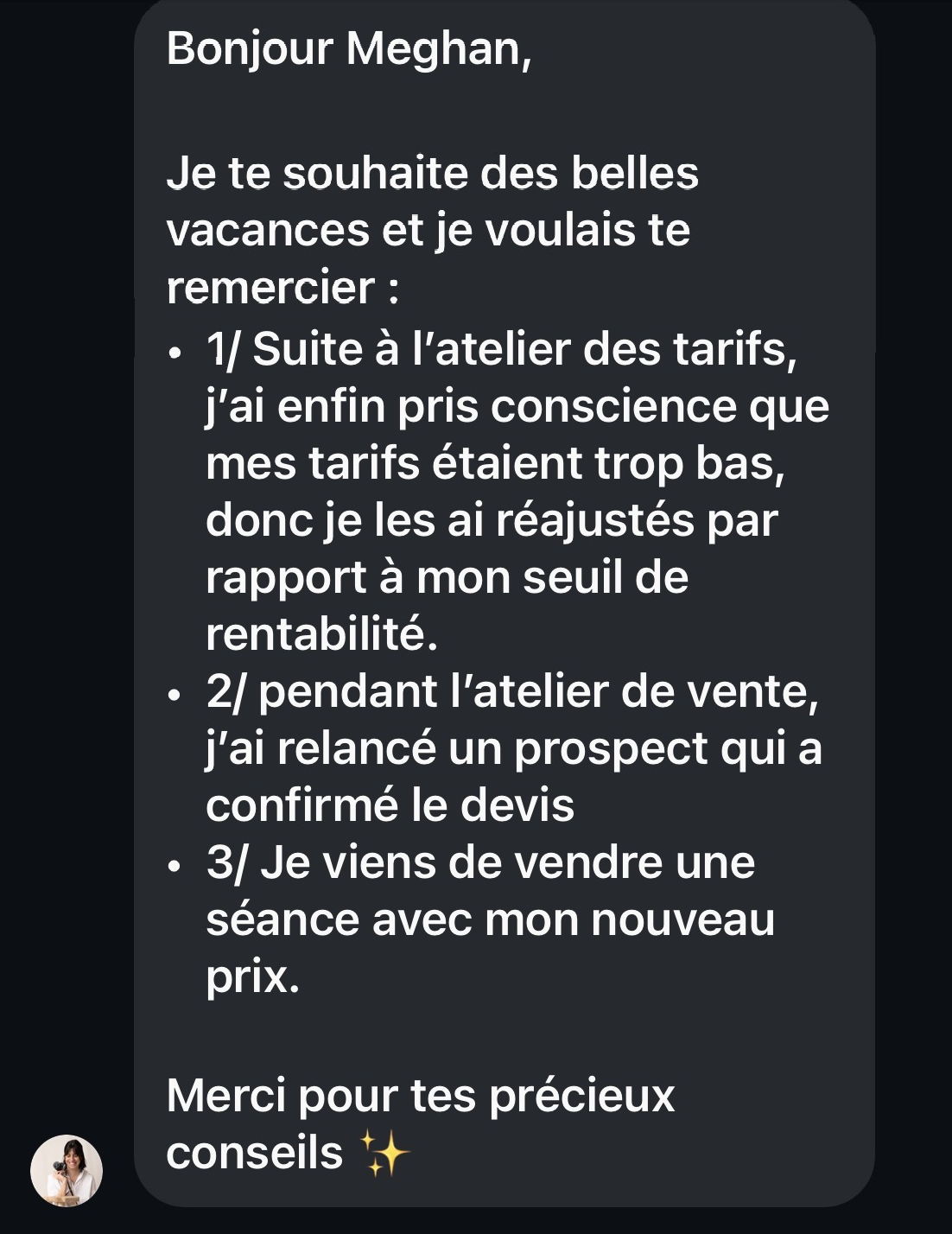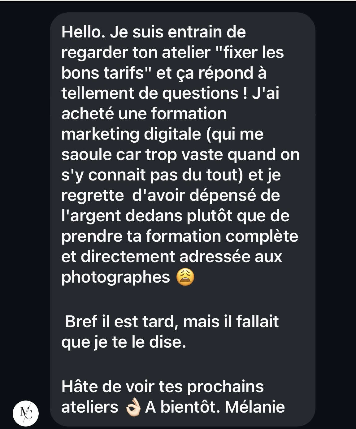 Après ça, chacun sera équipé pour sortir des décisions-réflexes comme baisser ses prix, se justifier, ajouter plus de photos, de temps, dépendre des mini séances, copier ce que font les autres, ruminer… ou juste éviter le sujet.